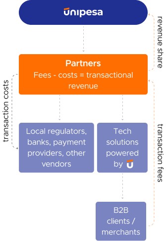 The company operates on a transactional revenue share model and connects all partners into a unified financial network.