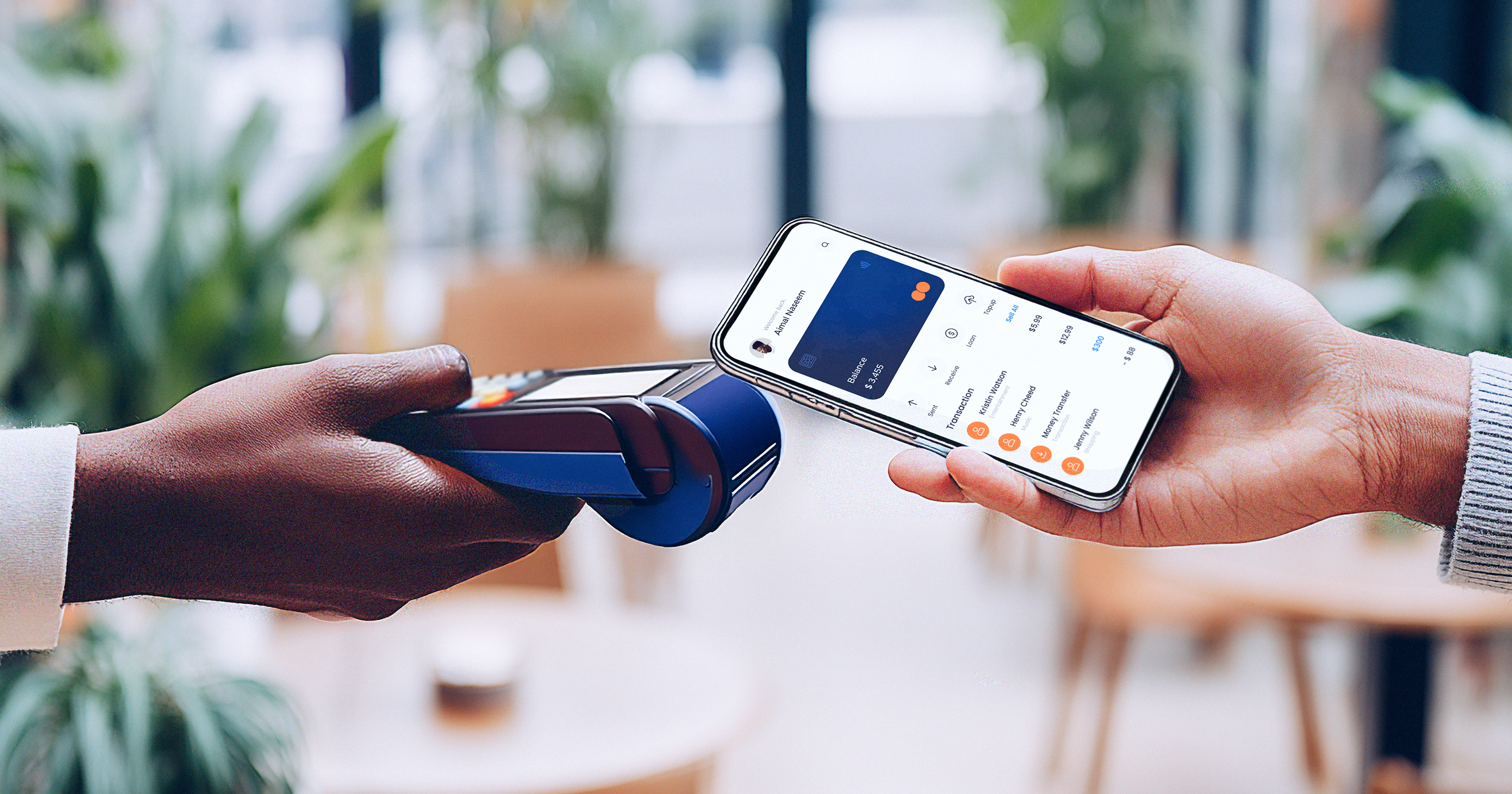 Cashiers use Android phones or terminals to accept payments, issue top-ups, and handle local disbursements.